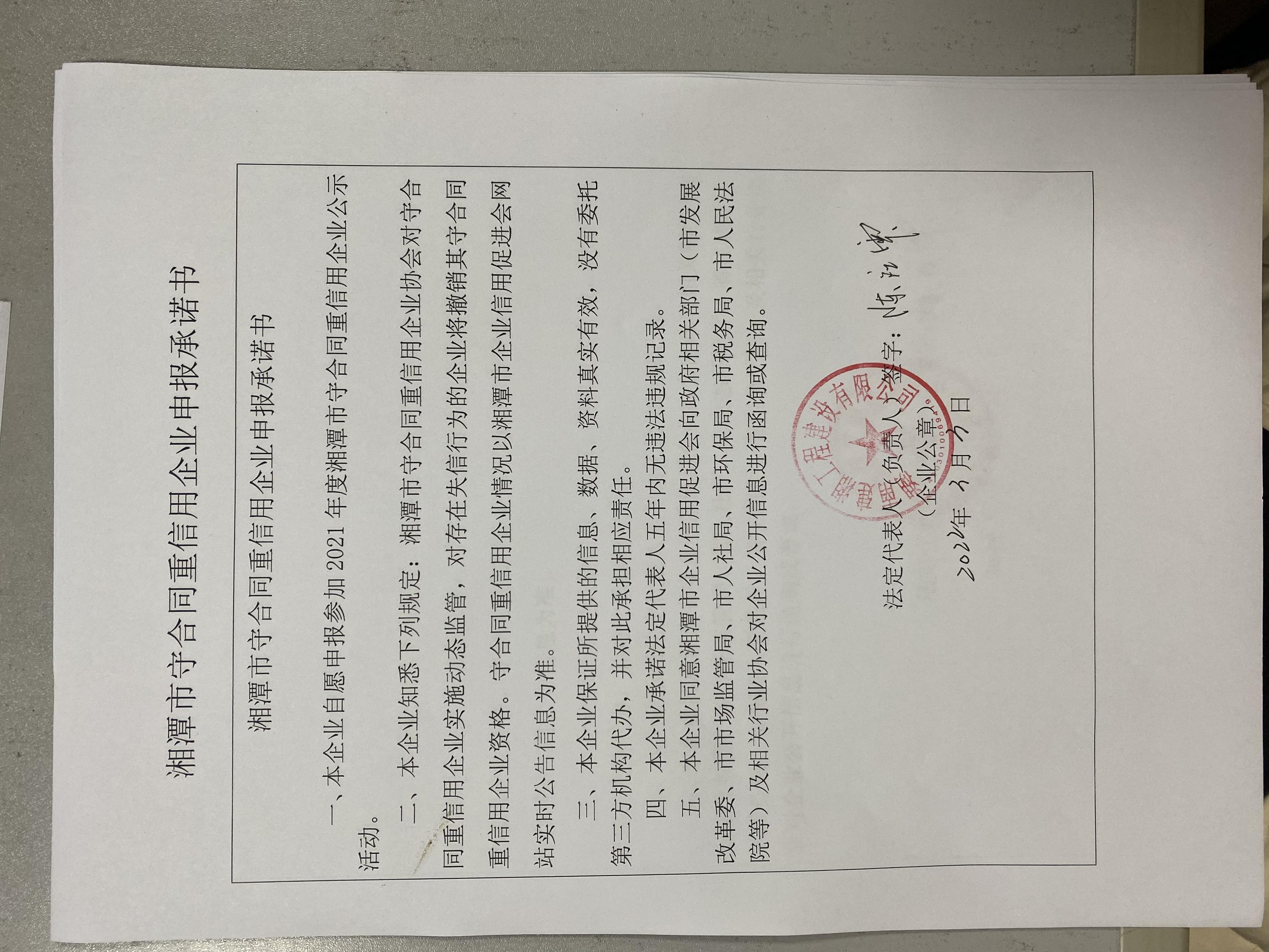 本企業(yè)根據(jù)《湘潭市守合同重信用企業(yè)申報(bào)規(guī)定》等編制 2021 年度企業(yè)信用報(bào)告書,并保證本報(bào)告書內(nèi)容真實(shí)、準(zhǔn)確、完整。