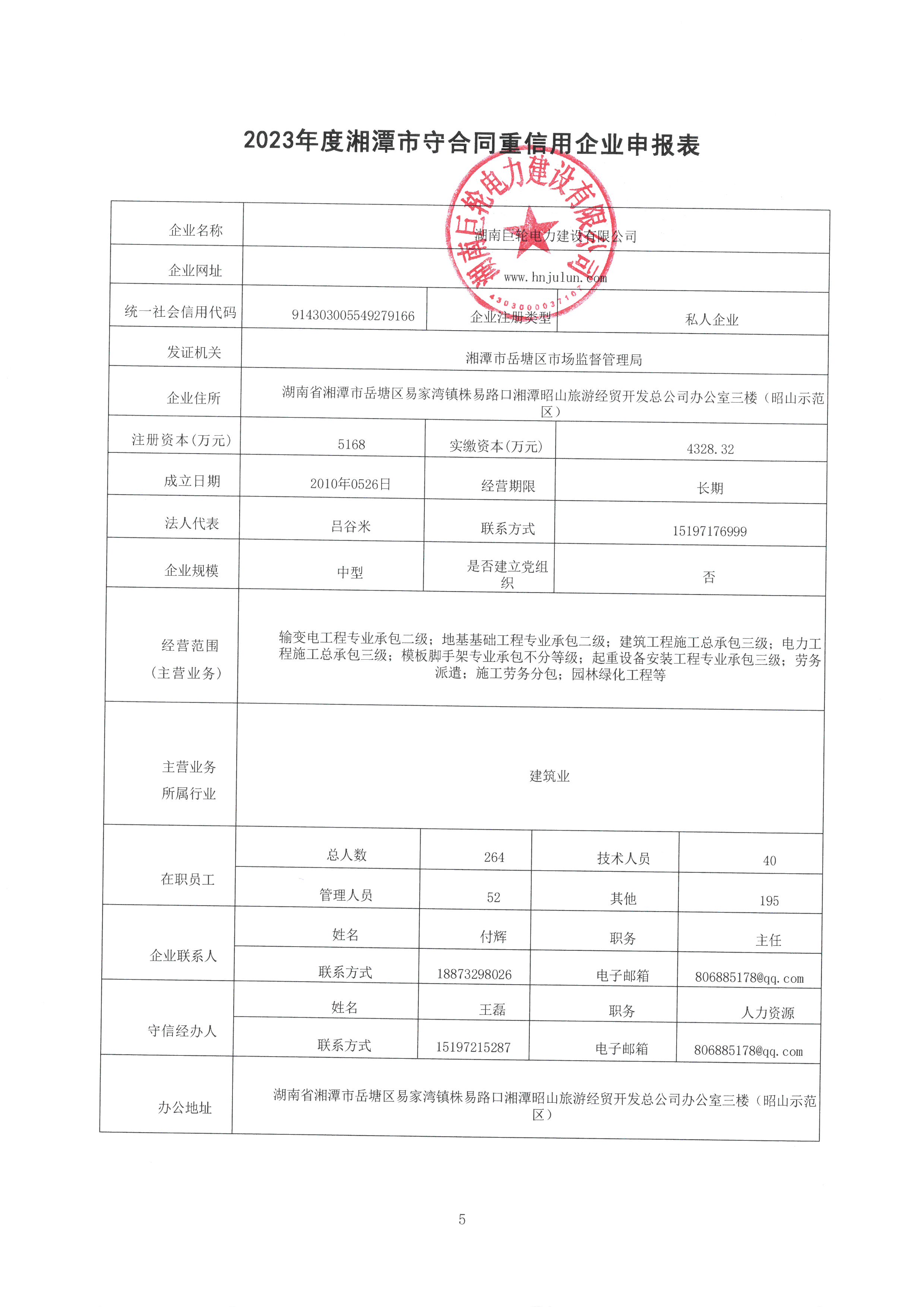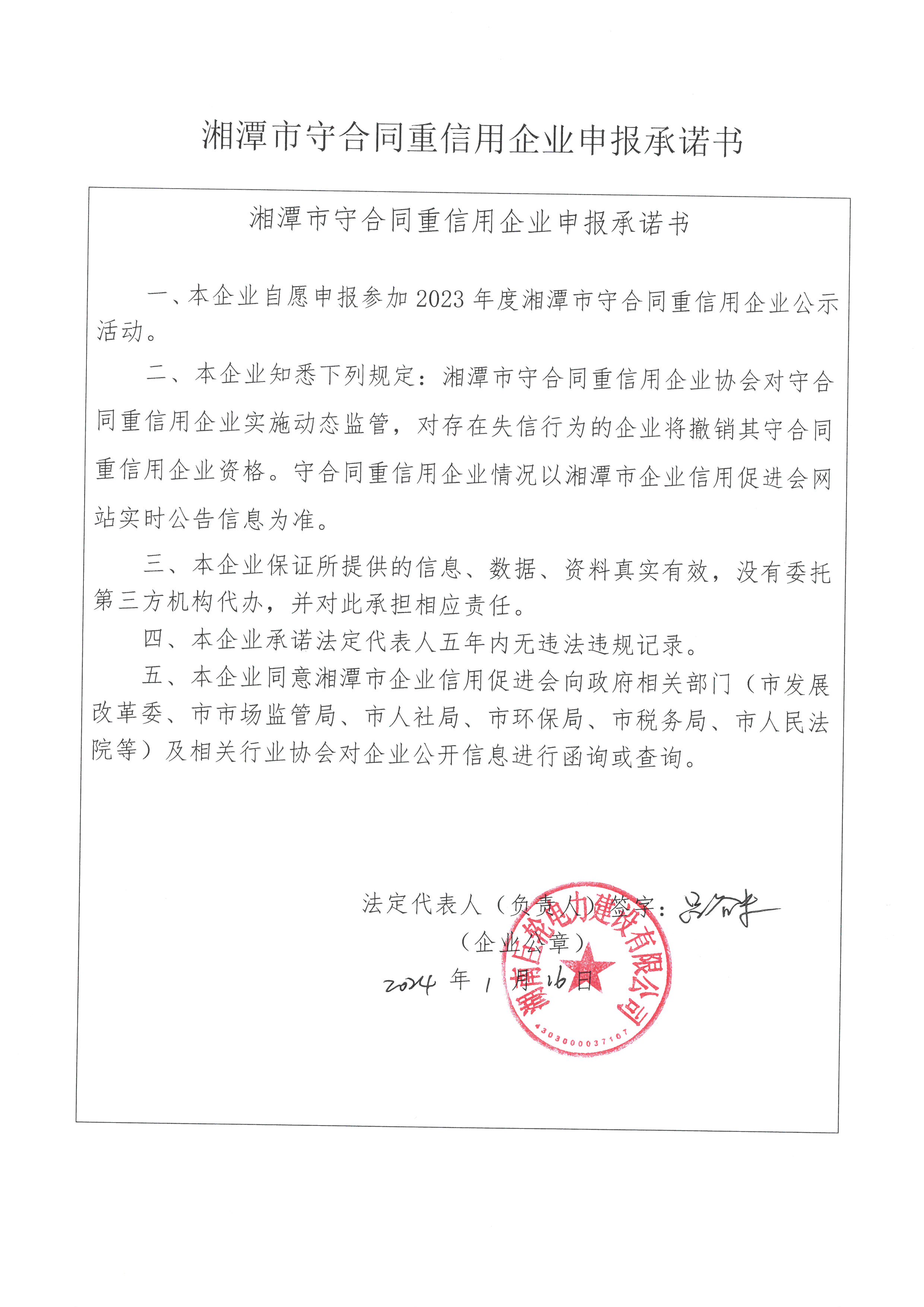本企業(yè)根據(jù)《湘潭市守合同重信用企業(yè)申報規(guī)定》等編制 2023 年度企業(yè)信用報告書,并保證本報告書內(nèi)容真實、準確、完整。