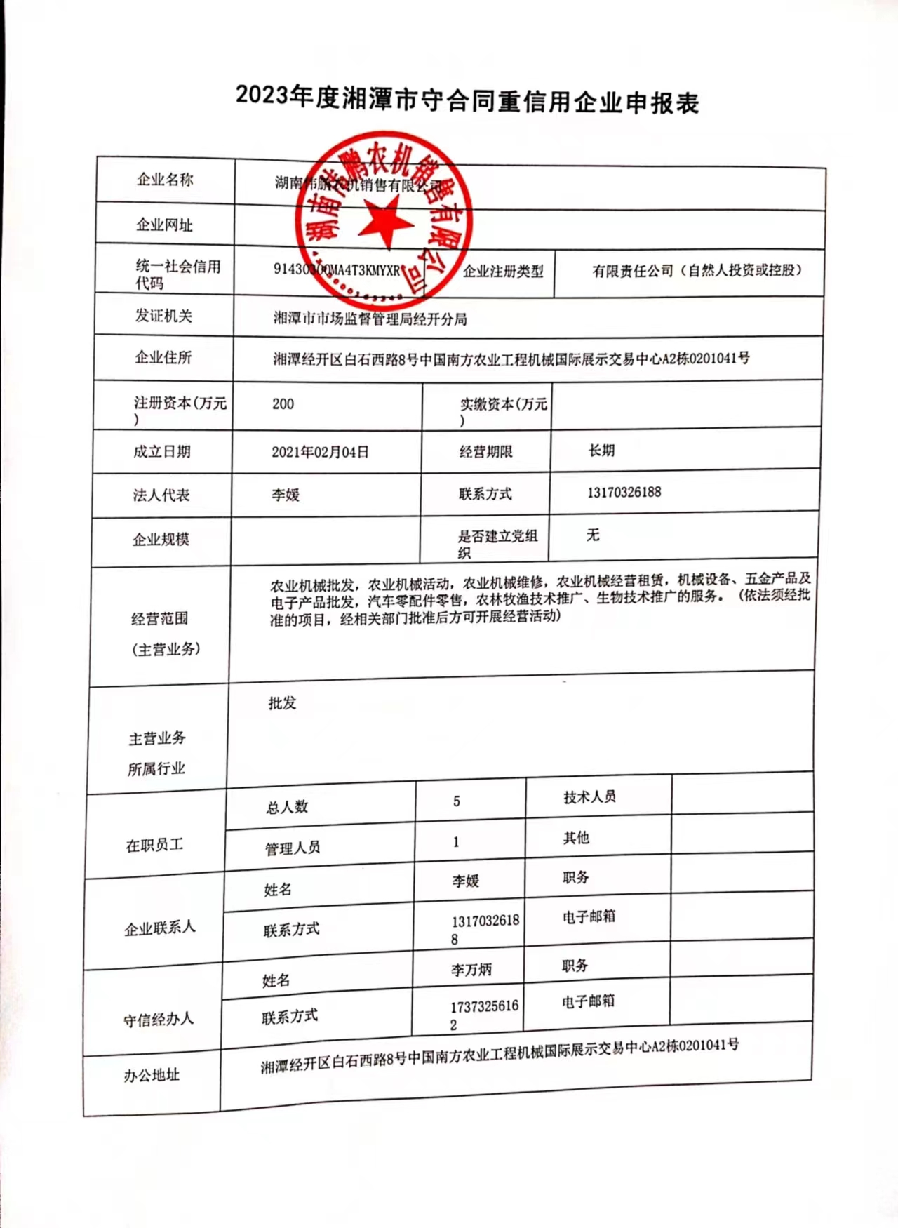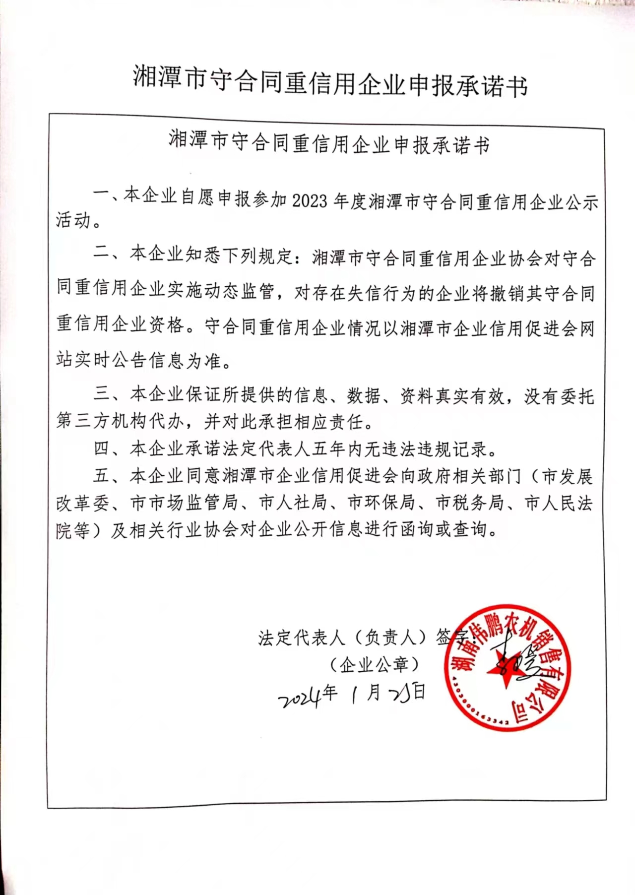 本企業(yè)根據(jù)《湘潭市守合同重信用企業(yè)申報規(guī)定》等編制 2023 年度企業(yè)信用報告書,并保證本報告書內(nèi)容真實、準確、完整。