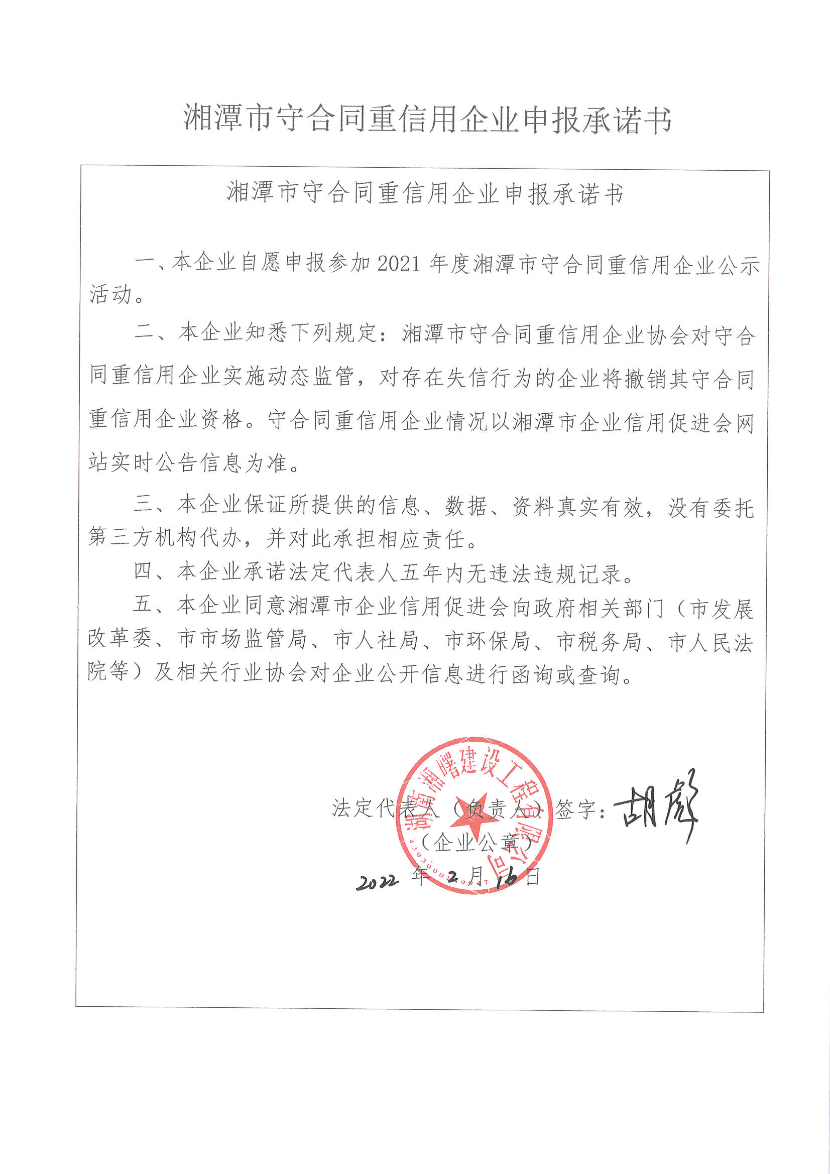 本企業(yè)根據(jù)《湘潭市守合同重信用企業(yè)申報規(guī)定》等編制 2021 年度企業(yè)信用報告書,并保證本報告書內(nèi)容真實、準確、完整。