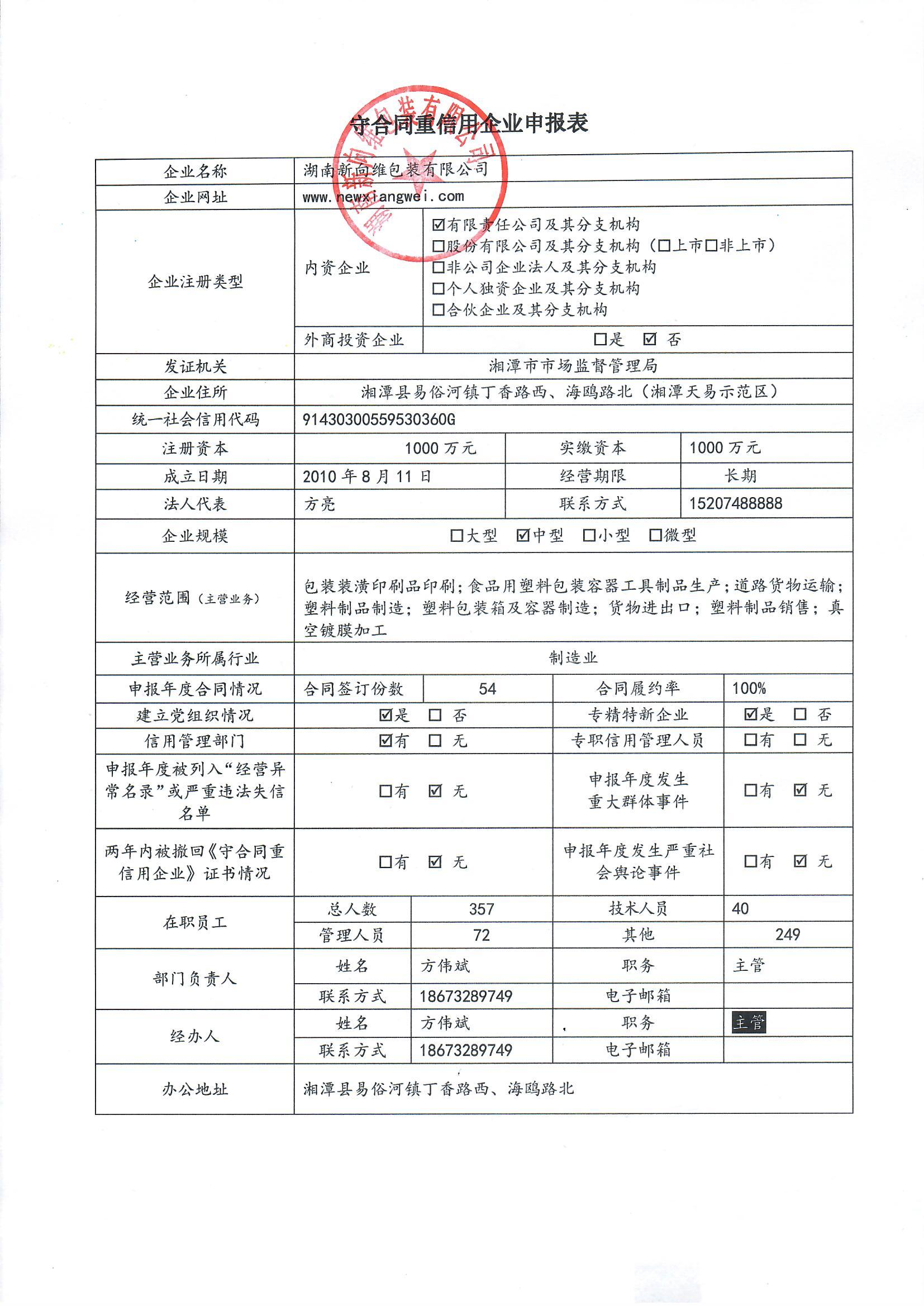 本企業(yè)根據(jù)《湘潭市守合同重信用企業(yè)申報規(guī)定》等編制 2024 年度企業(yè)信用報告書,并保證本報告書內(nèi)容真實、準(zhǔn)確、完整。