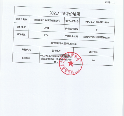 企業(yè)納稅信用等級(jí)報(bào)告: