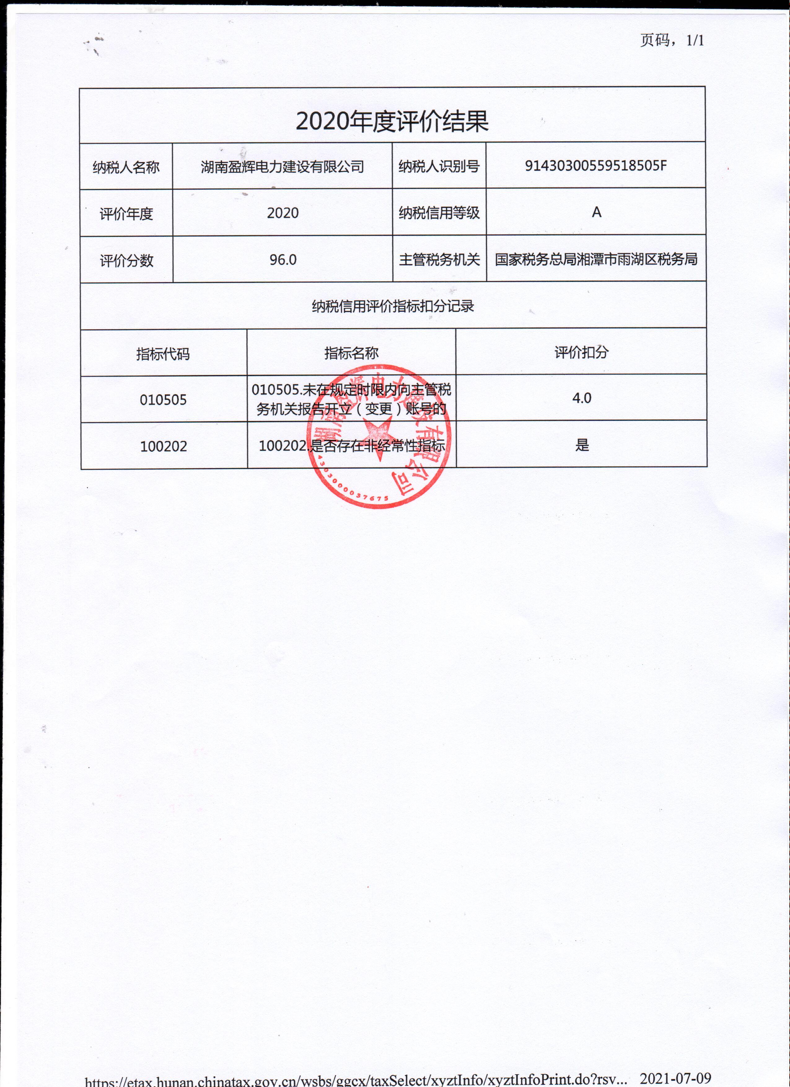 企業(yè)納稅信用等級(jí)報(bào)告: 納稅信用等級(jí)A級(jí).jpg