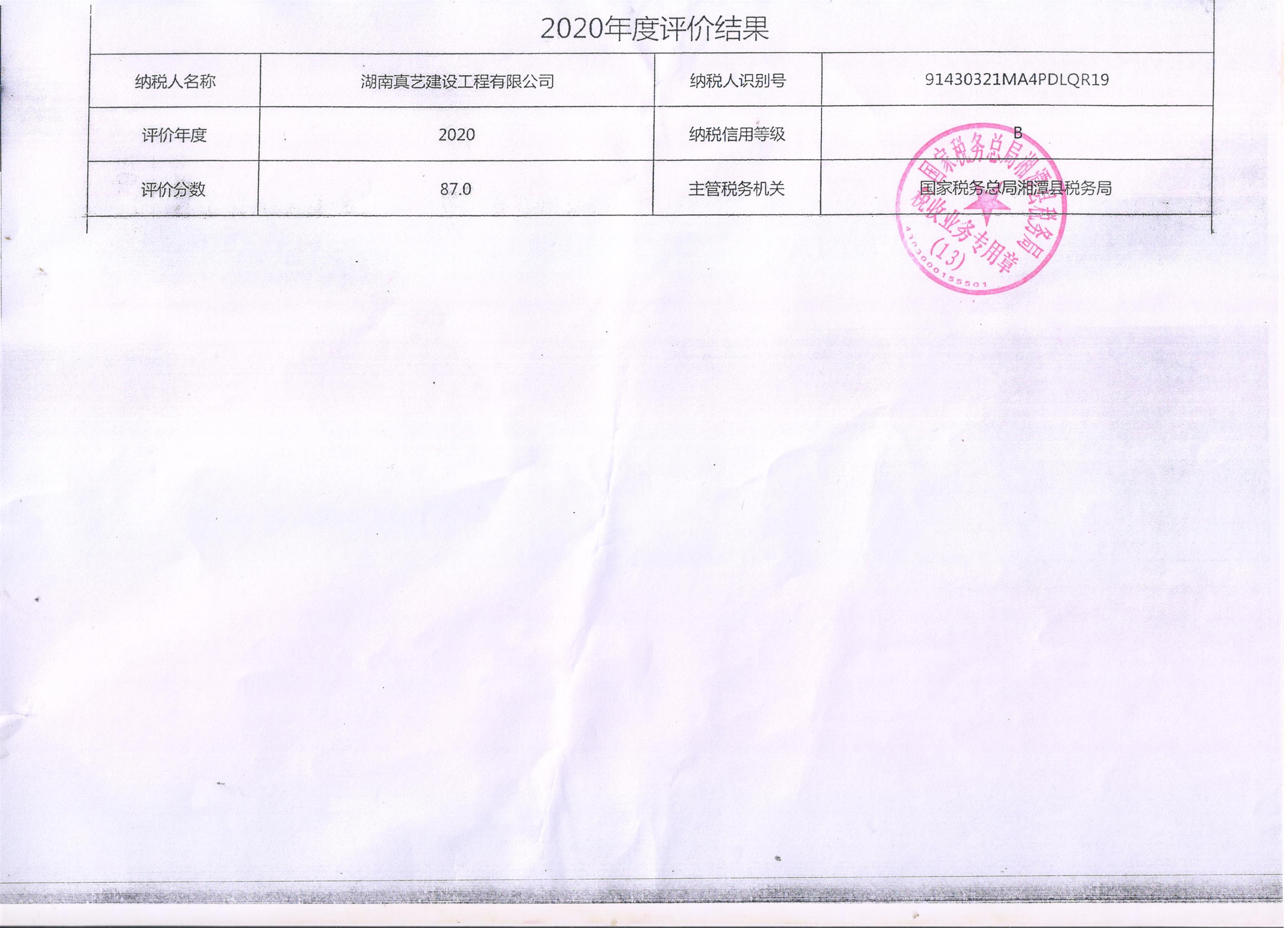企業(yè)納稅信用等級(jí)報(bào)告: 2020年度真藝納稅信用等級(jí).jpg