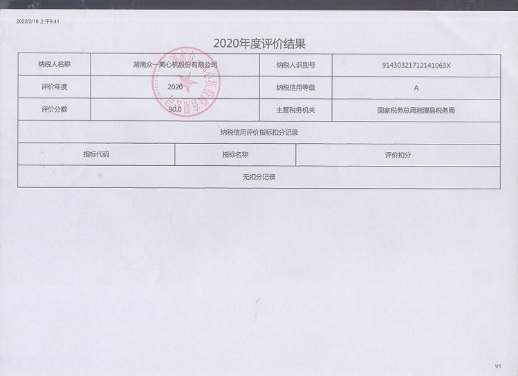 企業(yè)納稅信用等級報(bào)告: