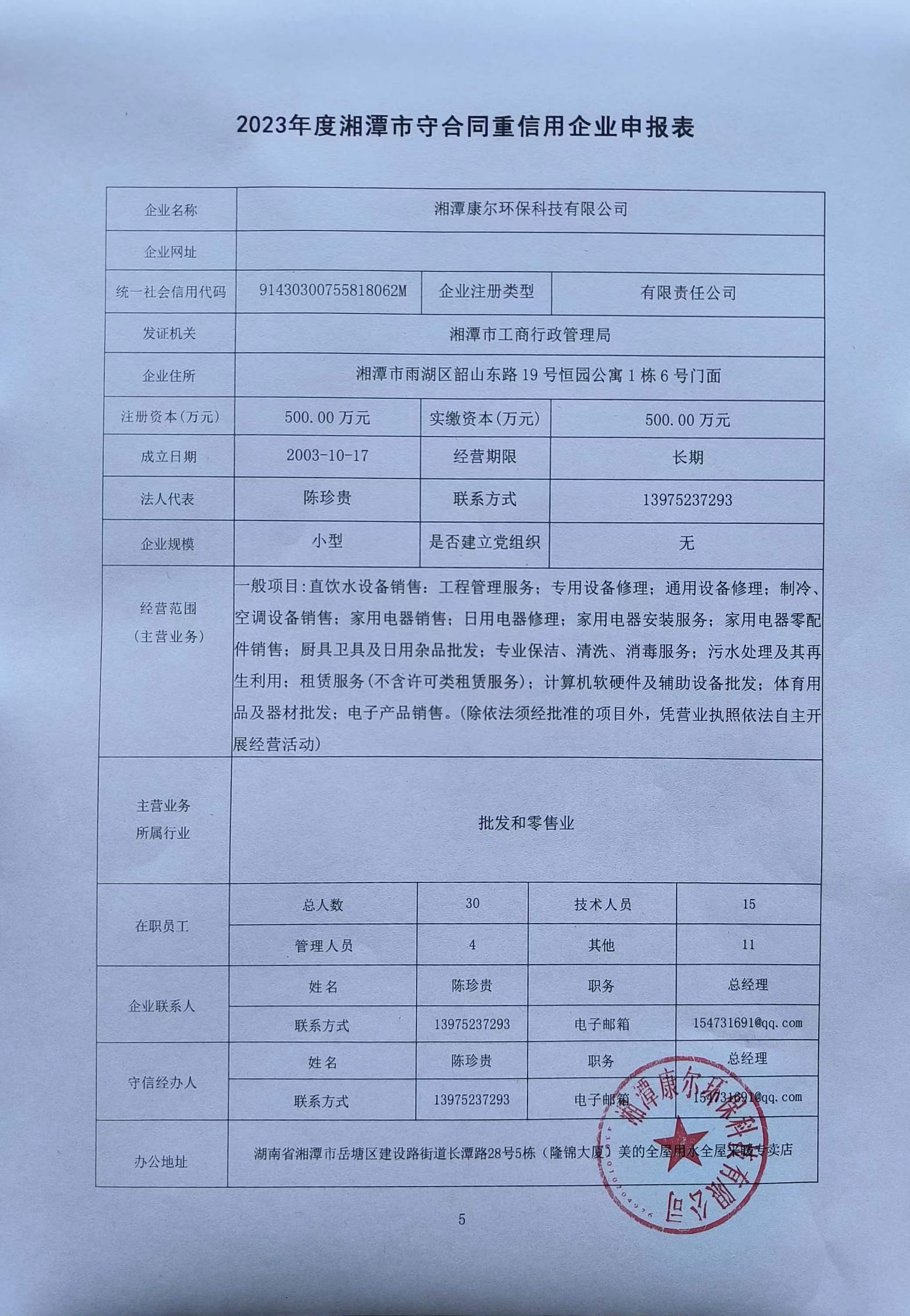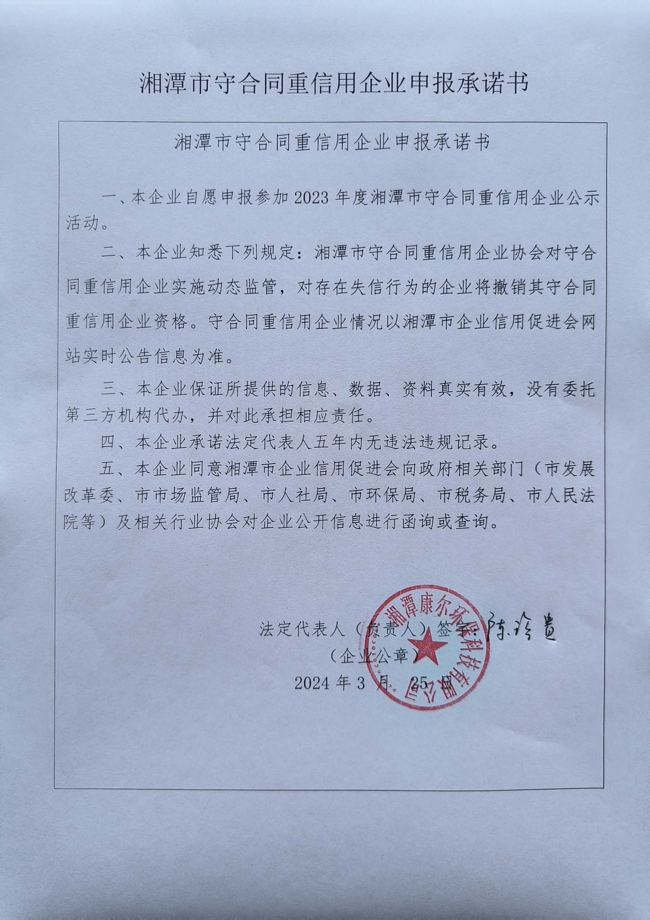 本企業(yè)根據(jù)《湘潭市守合同重信用企業(yè)申報(bào)規(guī)定》等編制 2023 年度企業(yè)信用報(bào)告書,并保證本報(bào)告書內(nèi)容真實(shí)、準(zhǔn)確、完整。
