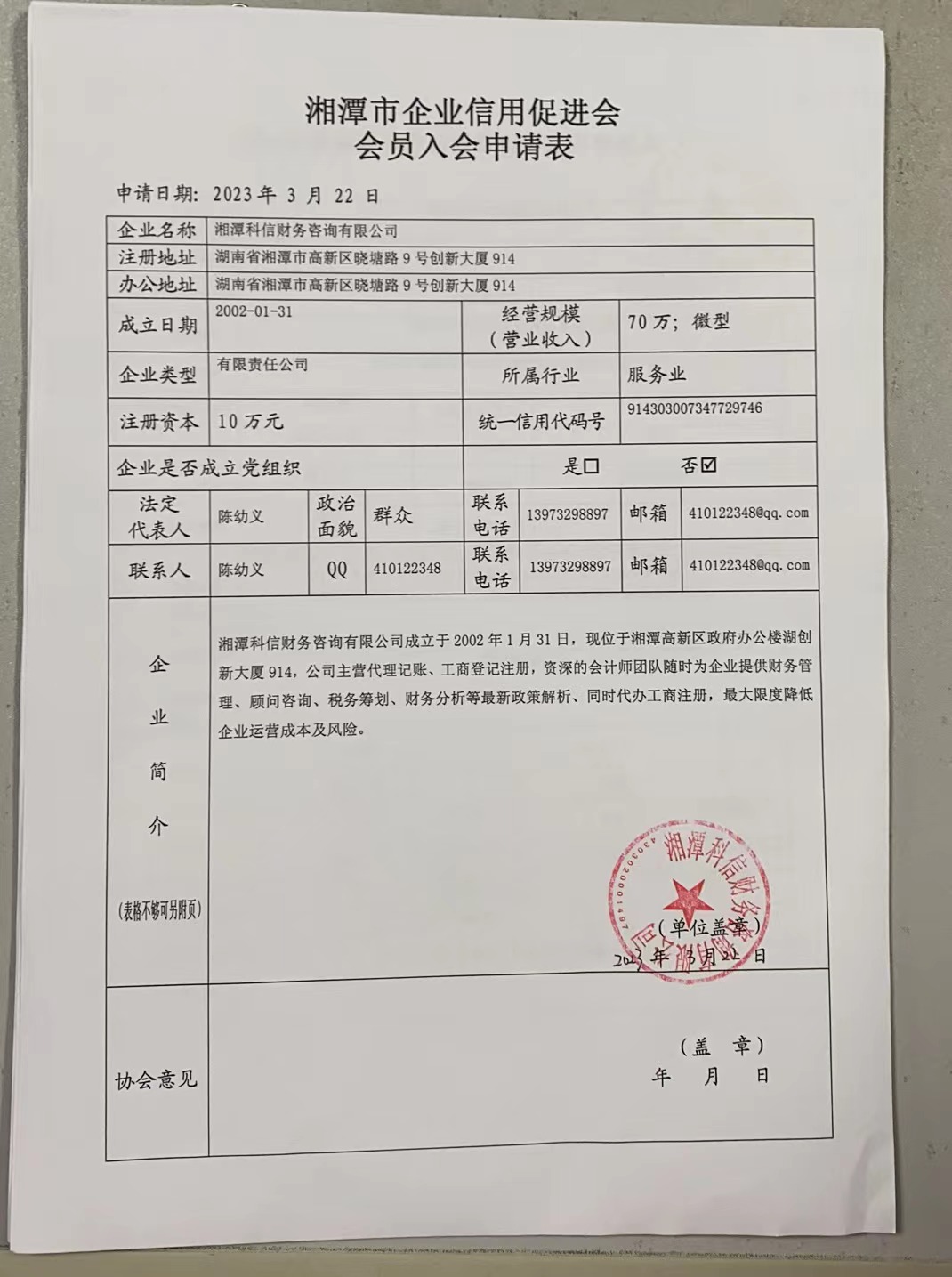 住所: 湖南省湘潭市高新區(qū)曉塘路9號(hào)創(chuàng)新大廈914 業(yè)務(wù)主管單位: 湘潭市企業(yè)信用促進(jìn)會(huì)