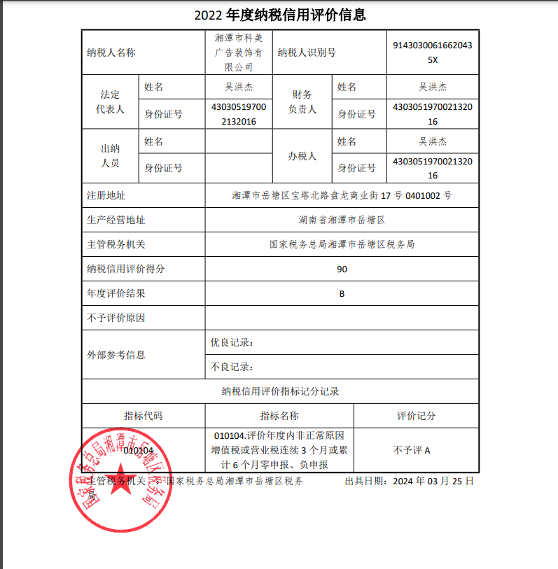 企業(yè)納稅信用等級(jí)報(bào)告: 4e3962ab12a1229955adf0feeadaddd.png